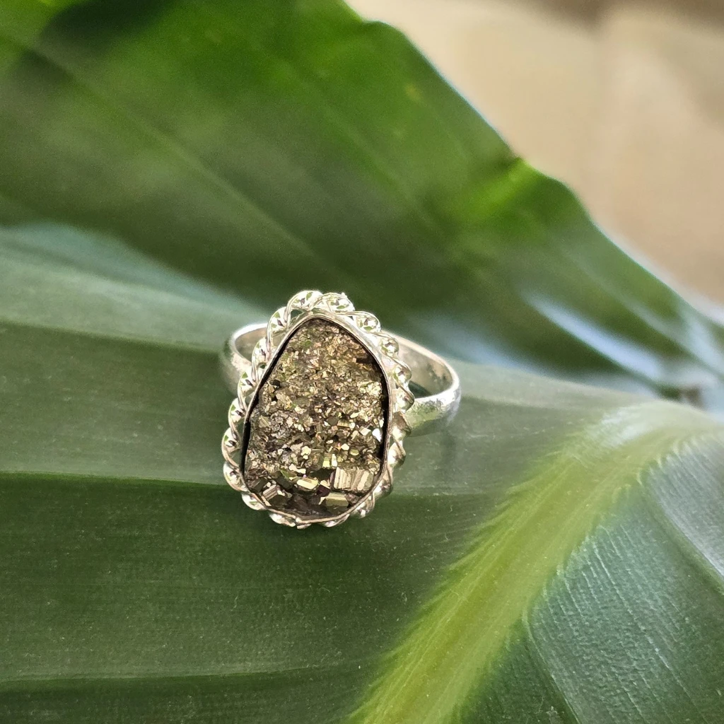 The Pyrite Ring is known as the Stone of Abundance and Protection. With its natural golden shine, Pyrite supports confidence, willpower, and focused action while shielding against negative energy.