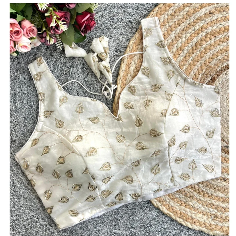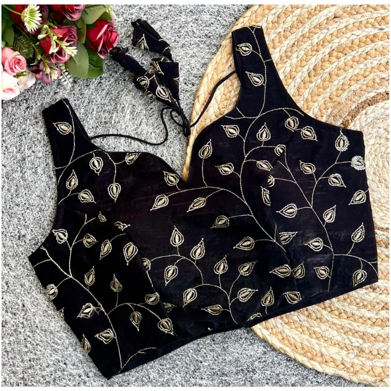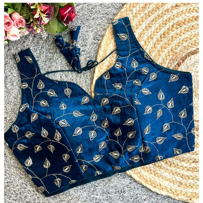 This statement blouse is ideal for those who love sophisticated embroidery with a modern royal finish.