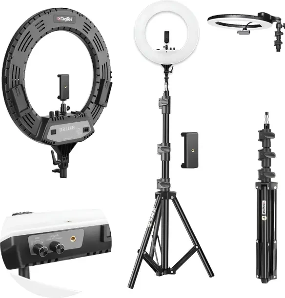 Multi angle: With a 360 degree rotated smart phone holder, you can angle vertically or horizontally without taking the phone out of the holder. For photographers, a hot shoe adapter included fits onto a standard accessory shoe on the stand. Dual color modes: With color temperature variable from 3200 to 5600k, runs on 2 optional Sony np-f550 / 750 / 960 lithium-ion batteries suitable where there is no power supply. Button controls: DRL-18H C comes with Intensity control, Color temperature control & power button making it easier to operate. Comes with 6 feet stand along with this Ring Light.