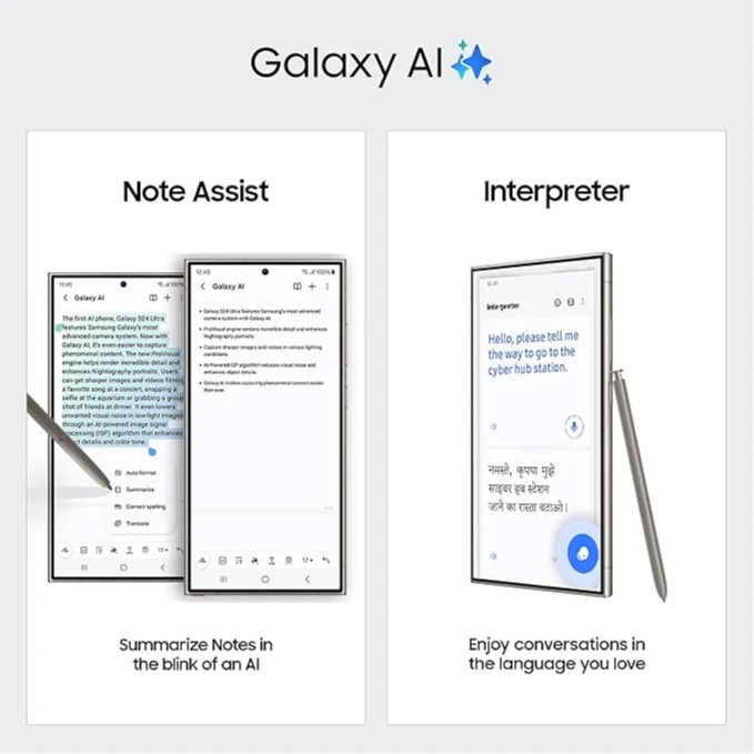 • Galaxy AI - Welcome to the era of mobile AI. With Galaxy S24 Ultra and One UI in your hands, you can unleash completely new levels of creativity, productivity and possibility.