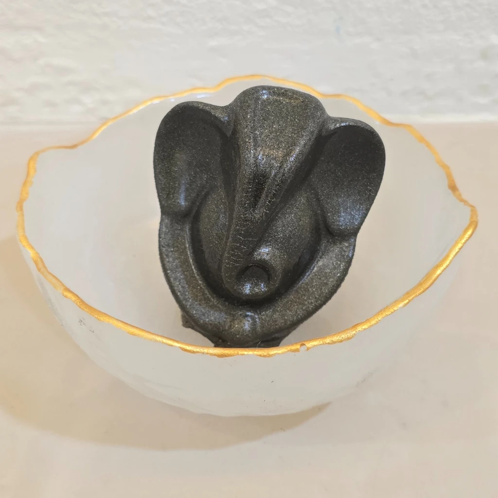 Ideal for homes, workspaces or temples, the bowl helps cleanse surrounding energy and charge other crystals. Pyrite Ganeshji, the remover of obstacles, invites success, wisdom and new beginnings.