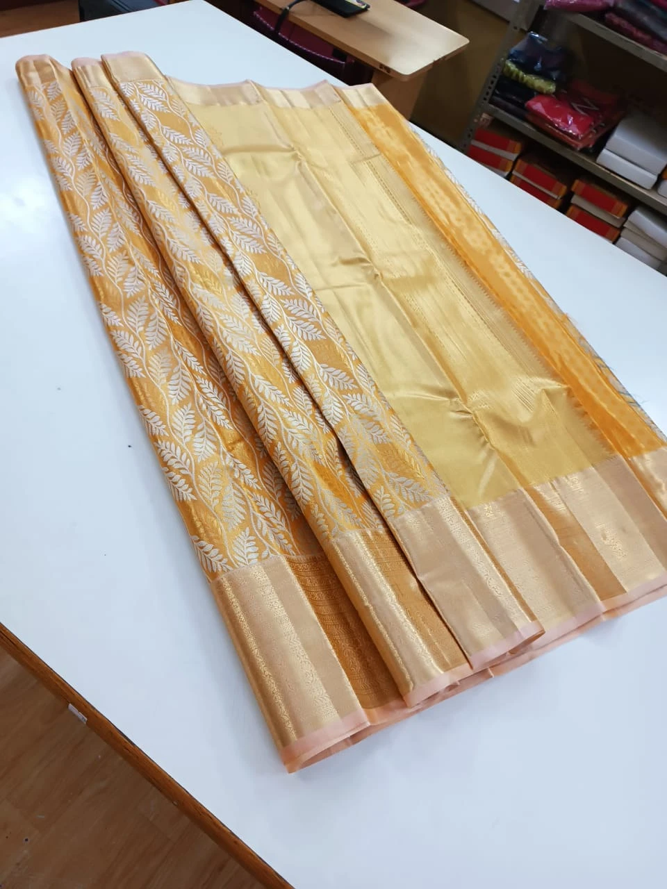 Add a touch of elegance to your ethnic collection with our Semi Tissue Silk Saree, designed to offer a subtle shimmer and luxurious look. Crafted with a fine blend that gives the rich appearance of tissue silk, this saree features a smooth texture and graceful drape, making it perfect for festive occasions, weddings, and special events.