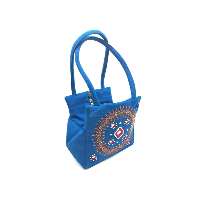1)A soft high quality Cotton (Poplin Fabric) with heavy duty zipper bag. A Piece of Art, Banjara Embroidery , With tiny Mirrors, Beads and Colorful Thread work called Traditional Banjara needle craft . The bag is easy to wear and carry .