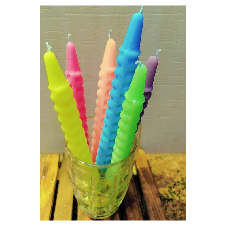 Add vibrance and elegance to any setting with our Spiral Multi-Color Candle Pack. This pack includes 4 beautifully crafted 8-inch spiral candles, featuring rich, eye-catching colors and a combined weight of 185 grams.
