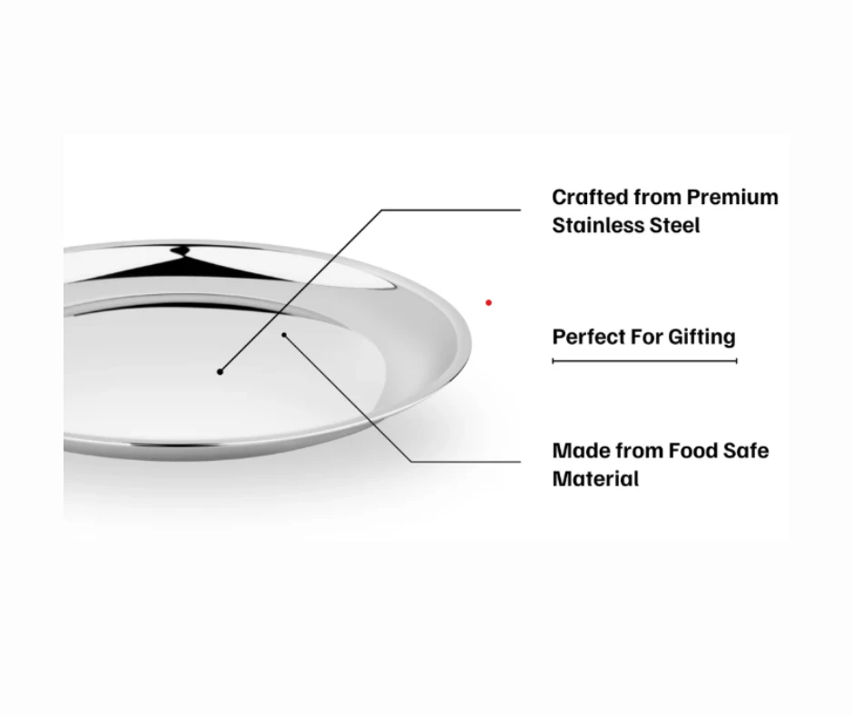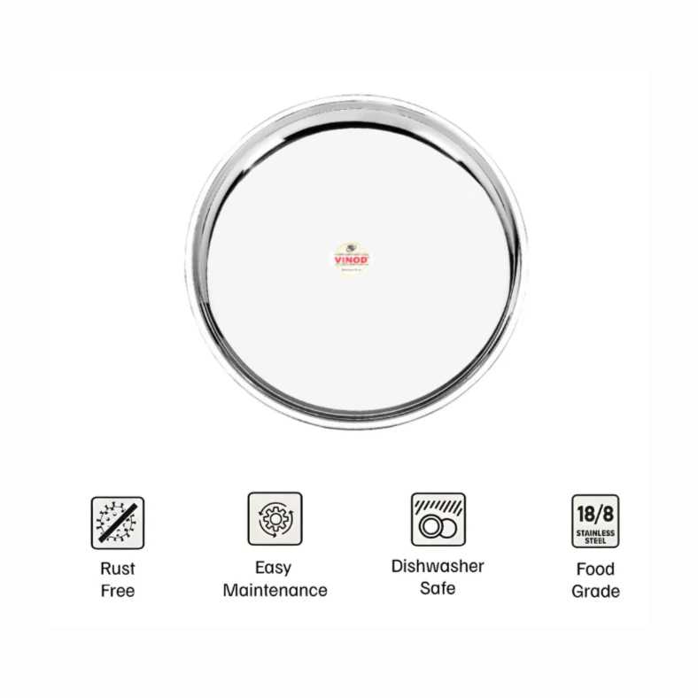 • Serve your Lunch and Dinner with Vinod Stainless Steel China Dinner Plate Made from High Grade Genuine Stainless Steel with Mirror finishing