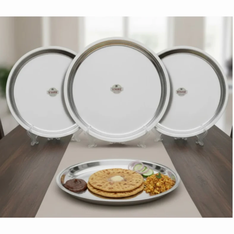 • Vinod stainless steel New Tat plates are perfect for serving rice, sabji, dal, roti, snacks etc. They can be used in home, hotels, hostel mess, restaurants, dhabas etc.
