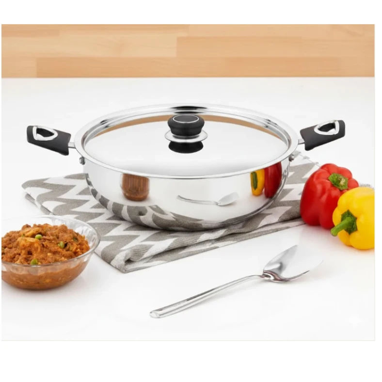 Stainless Steel Sorrento Sandwich Bottom Kadai with Steel Lid