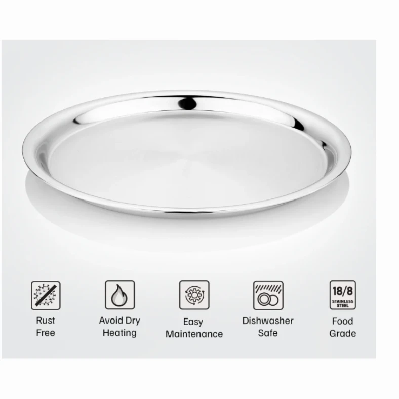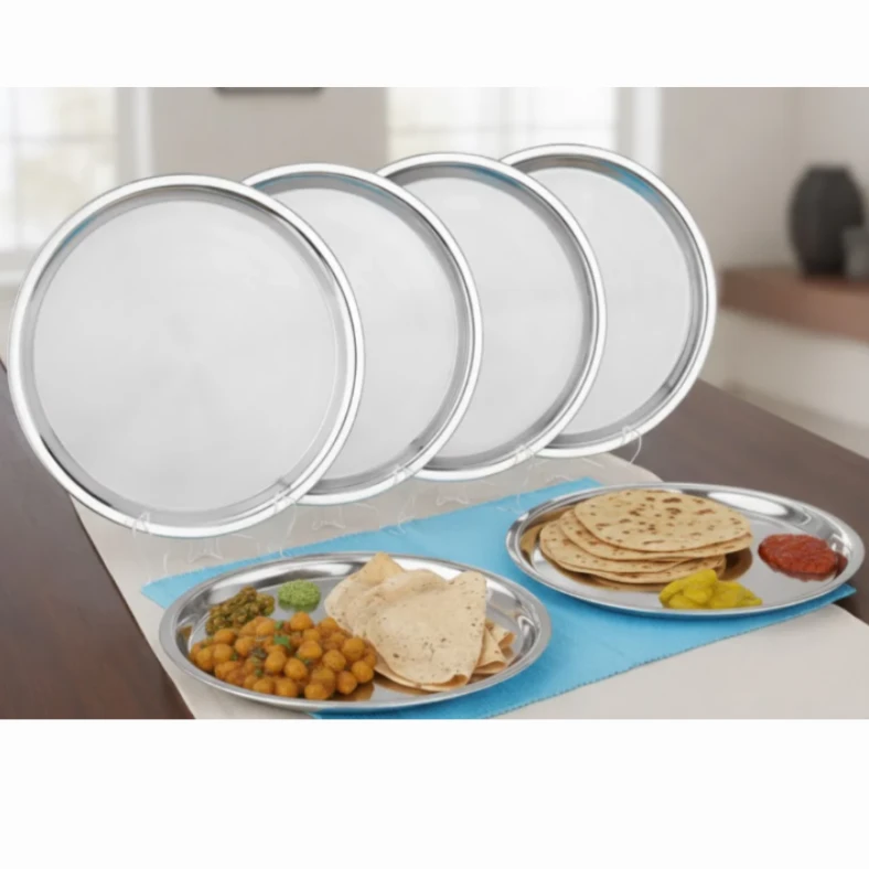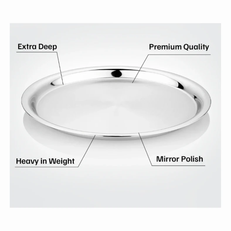 • The plates are round in shape and they have a 2 cm round beading patti (wall) design to prevent food from falling or scattering. They are compact in size and are easy to store in kitchen shelves, cupboards & stackable