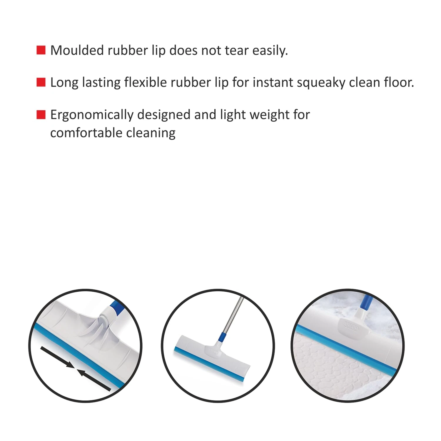 Long Lasting flexible rubber lip for instant Squeaky clean floor.