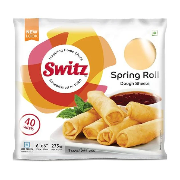 Switz Spring Roll Dough Sheets are ready-to-use thin pastry sheets designed to make crispy, crunchy spring rolls at home with ease. Made from quality wheat flour, these sheets are smooth, flexible, and perfect for wrapping your favorite fillings — whether vegetarian or non-veg.