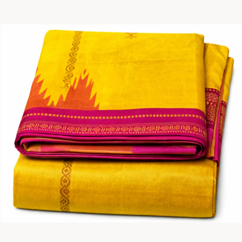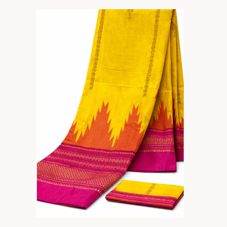 The traditional temple border gives the saree a classic South Indian appeal, while the contrast blouse piece perfectly complements the overall look. Lightweight and breathable, this saree is ideal for daily wear, festive occasions, cultural events, and traditional gatherings.