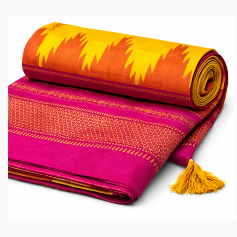 • Comes with matching contrast blouse piece