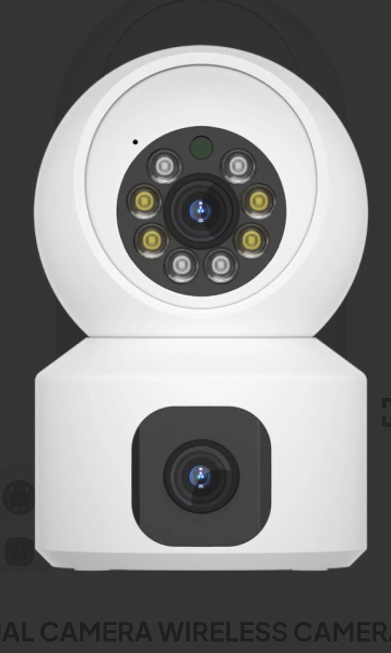 • Dual Lens System: The camera features two lenses, often combining a fixed "bullet" lens with a rotatable "dome" PTZ (Pan-Tilt-Zoom) lens to provide comprehensive 360-degree monitoring.