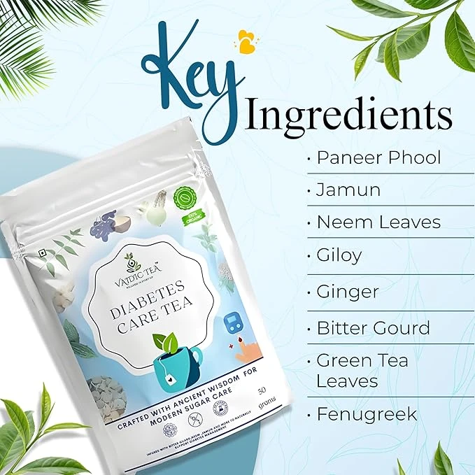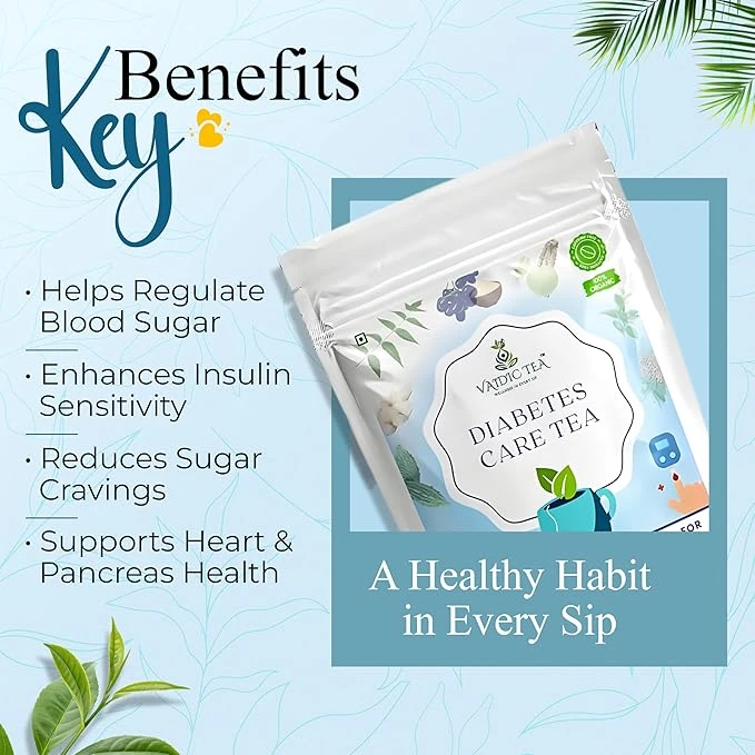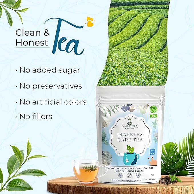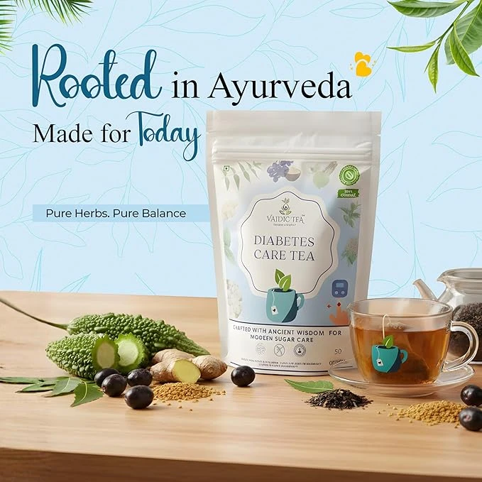 VAIDIC TEA Diabetes Care Herbal Tea, Natural Support for Blood Sugar Control, 100% Organic Ayurvedic Blend