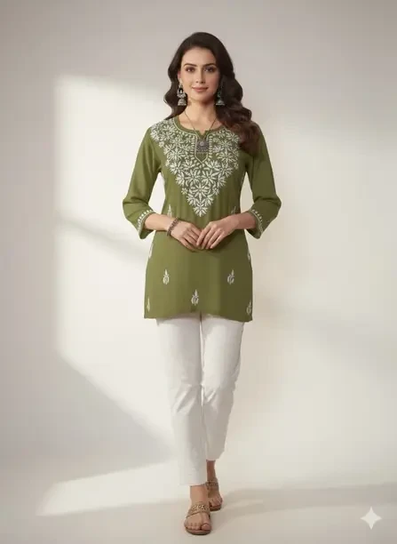 Trendy Lucknowi Chikan Kari Short Kurti | Chikanari Embroidery Tunic for Women