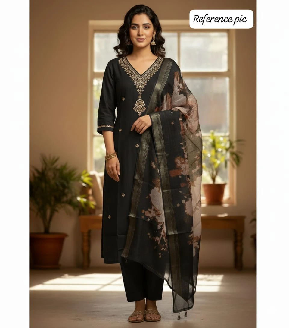 Step into timeless elegance with this beautifully crafted kurta set featuring a matching dupatta and coordinated bottoms. Designed with intricate prints/embroidery and made from soft, breathable fabric, this ensemble blends tradition with modern style. The kurta boasts a flattering silhouette with a stylish neckline and comfortable three-quarter sleeves, while the lightweight dupatta adds grace to the overall look. Perfect for festive occasions, family gatherings, cultural events, or casual ethnic wear, this kurta set ensures comfort without compromising on style.