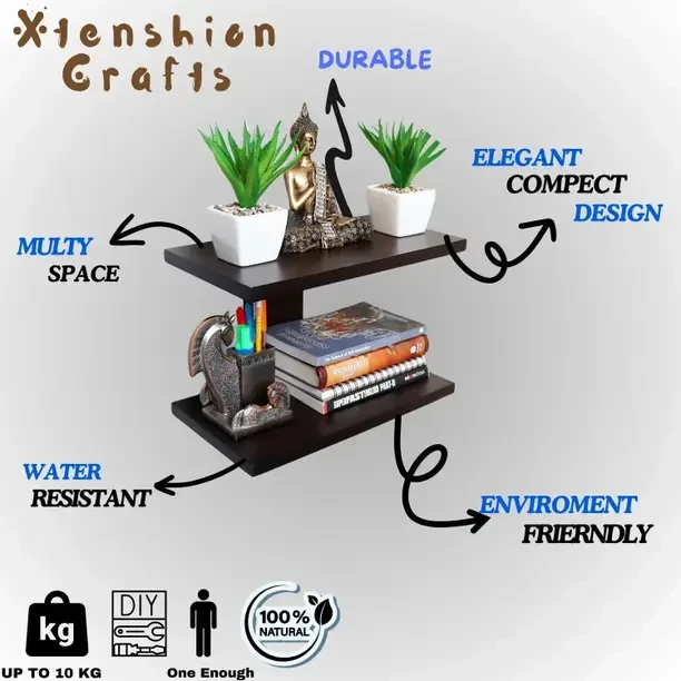 Xtenshion Craft A wall shelf is a type of shelving unit designed to be mounted on a wall, providing storage and display space without taking up floor space. These shelves come in various shapes, sizes, and materials to suit different needs and decor styles.2 N reck shelf Accessories Included: 6 Screws, 2 Wall Plugs (Gitti), All necessary fitting hardware included for wall mounting
