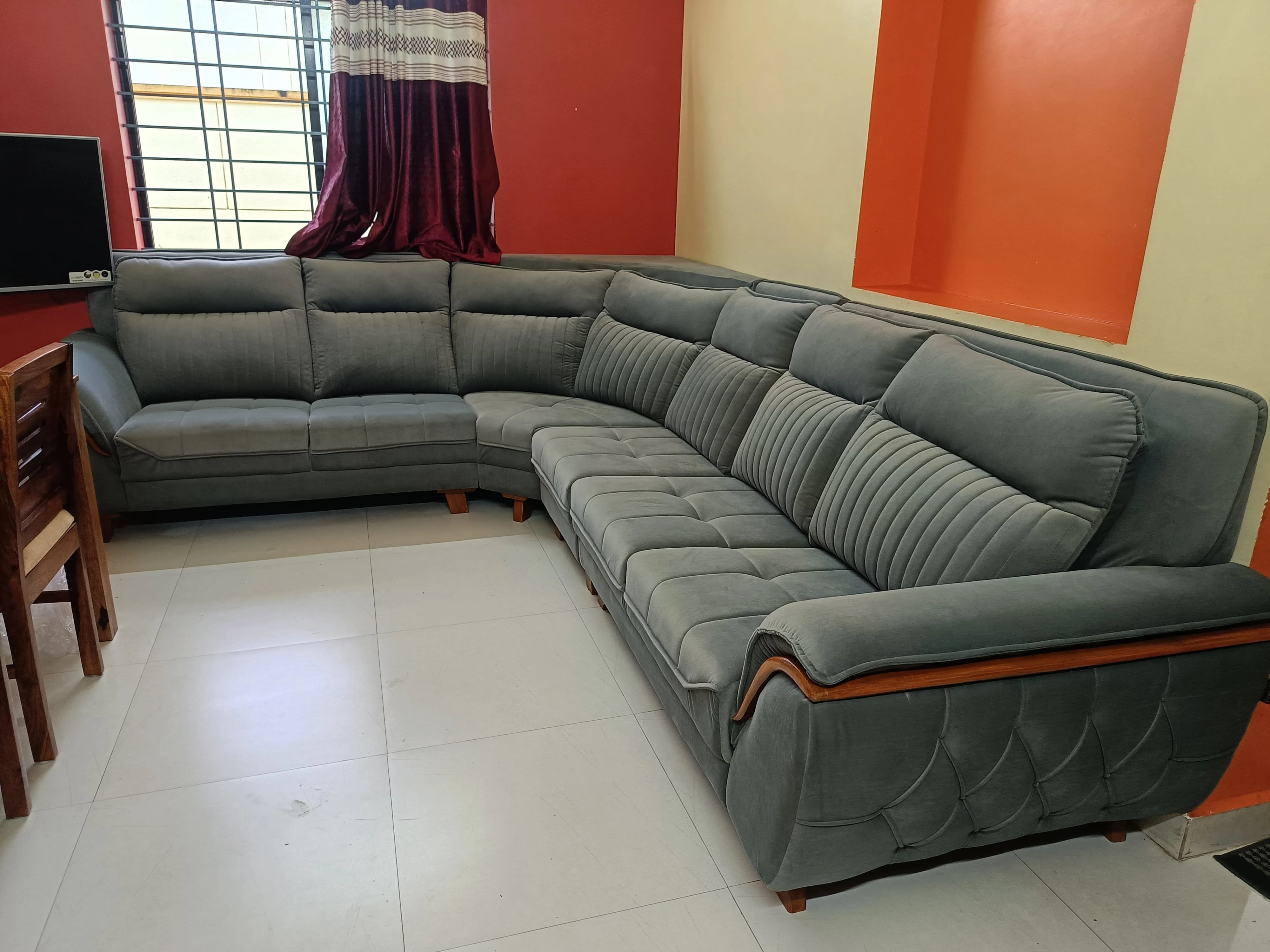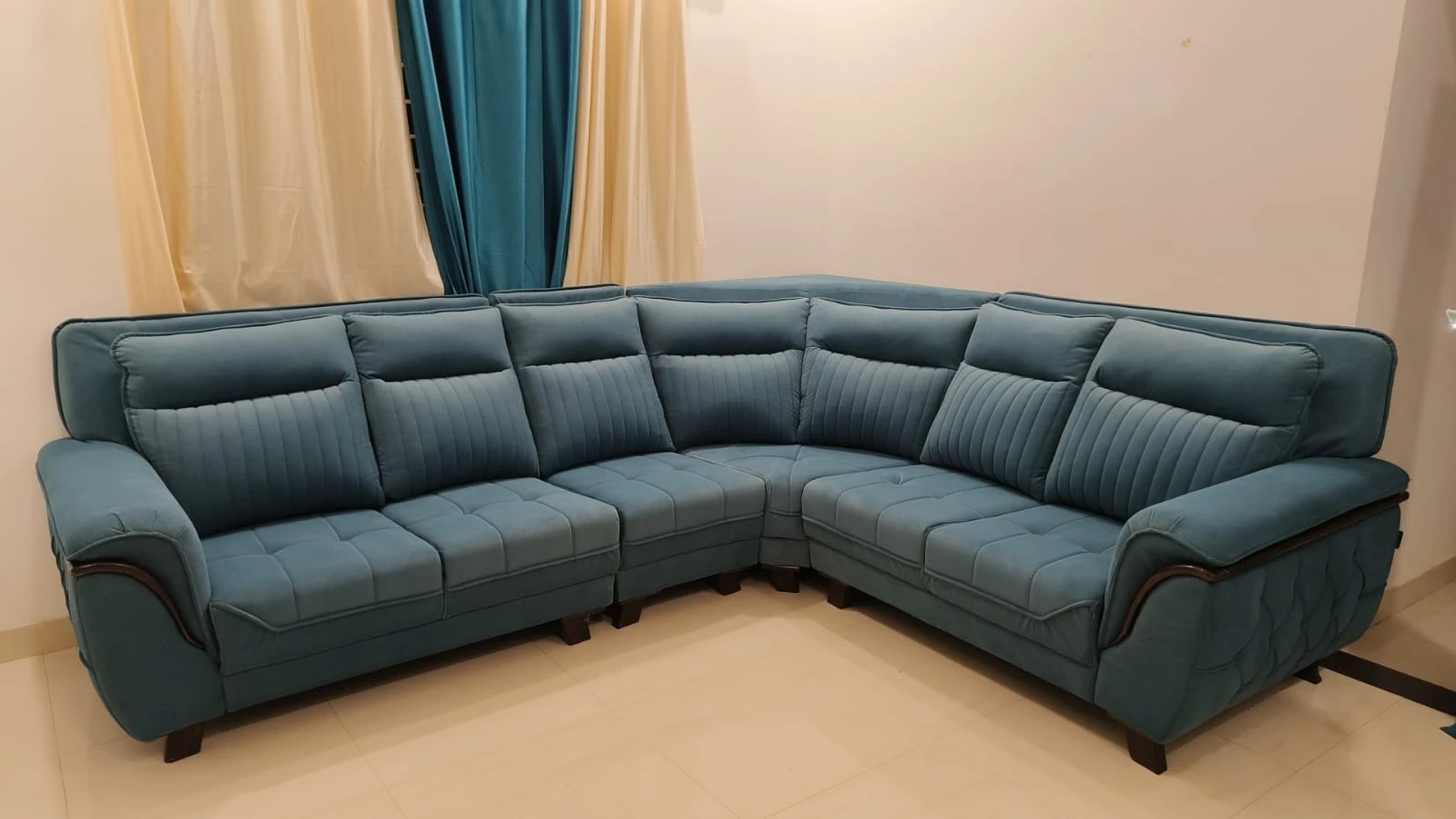 The Zebra Corner Sofa features a modern design with a spacious L-shape layout, offering maximum comfort and style. Upholstered in premium fabric with a strong wooden frame, it is perfect for living rooms that need both elegance and extra seating. Ideal for families and contemporary interiors.