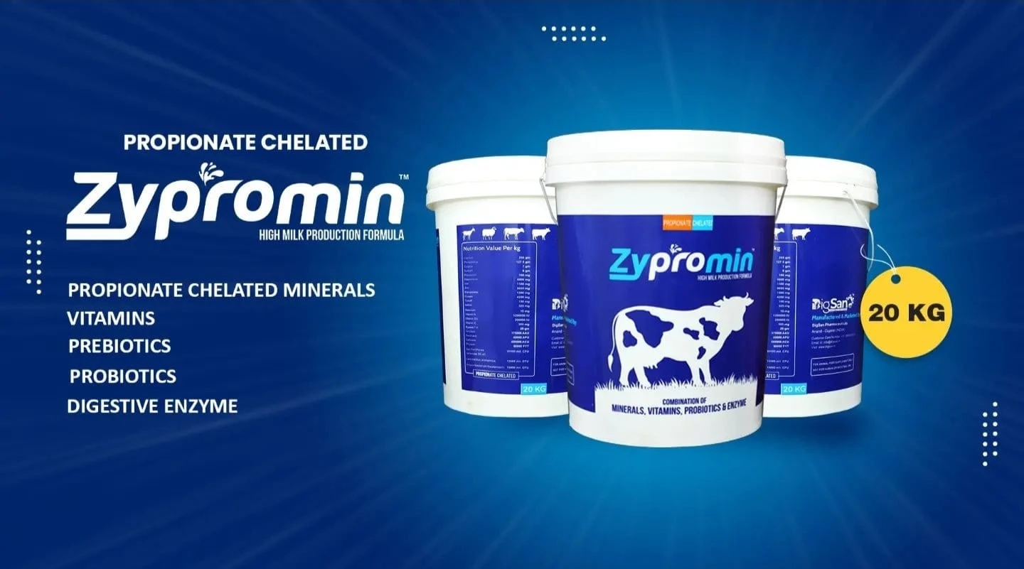 ZYPROMIN® ek high-quality, scientifically formulated chelated mineral mixture hai jo cows & buffaloes me fertility, milk production aur overall health ko naturally improve karta hai.